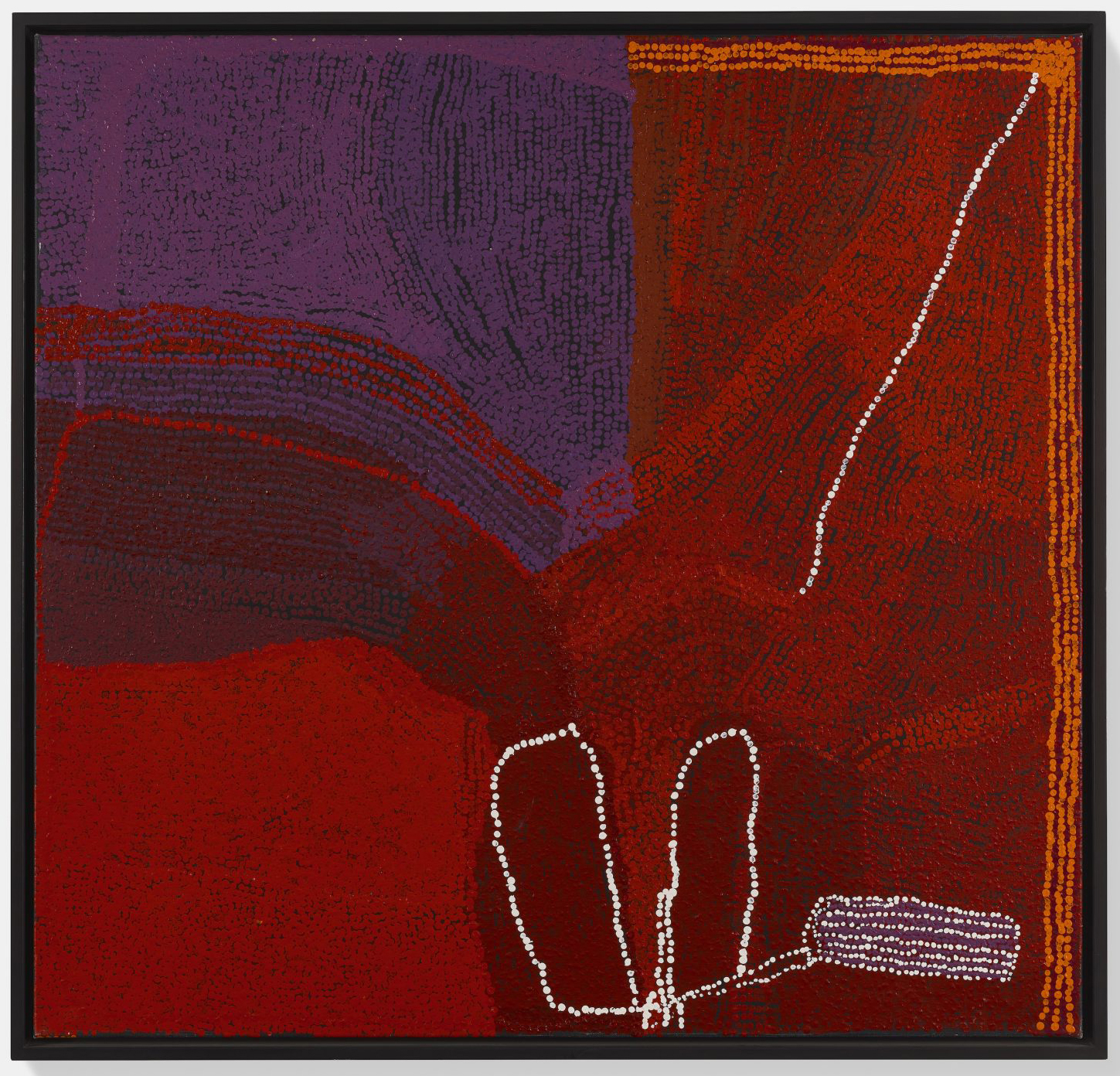 As a interior designer, I couldn’t help but think about colour palettes, rhythms, and placement. Imagine Patrick Olodoodi Tjungurrayi’s hot pinks against a cool grey London wall — the entire room would shift in temperature. Or Warlimpirrnga Tjapaltjarri’s intricate dots setting the pace in a modern Beckenham home.